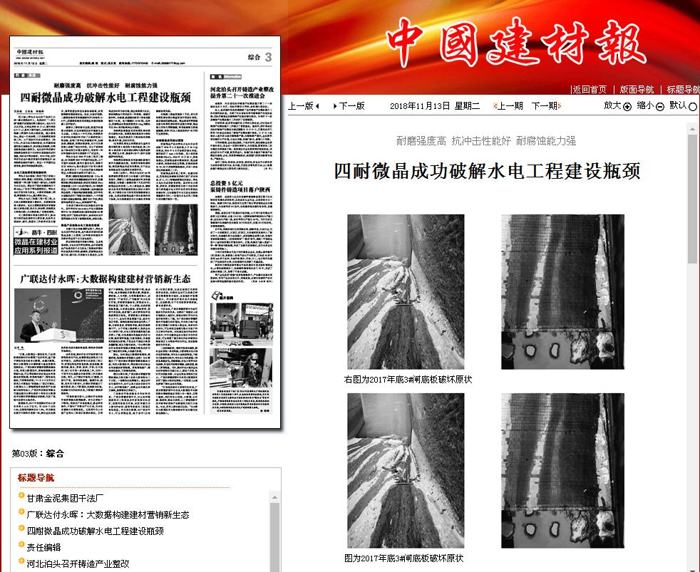 在接下來的考察調(diào)研過程中,坪頭水電站運行單位發(fā)現(xiàn),晶牛集團研發(fā)的四耐微晶及施工主要施工材料物理性能技術(shù)指標非常適用于水力發(fā)電場所。