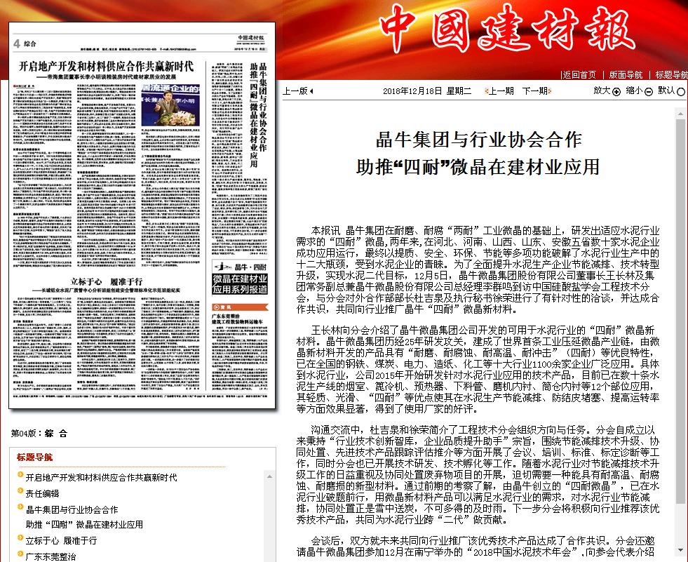 會談后,雙方就未來共同向行業推廣該優秀技術產品達成了合作共識。分會還邀請晶牛微晶集團參加12月在南寧舉辦的“2018中國水泥技術年會”,向參會代表介紹晶牛研發的“四耐微晶”產品。