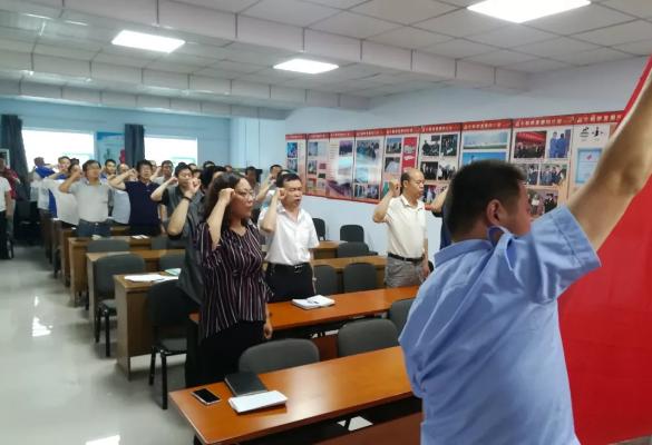 活動伊始,王群英書記講到,今年適逢中國共產(chǎn)黨成立98周年、新中國成立70周年,也是集團(tuán)吹響“新時代 新晶牛 再起航”號角的開局之年。為深刻領(lǐng)會習(xí)近平在5月31日“不忘初心、牢記使命”主題教育工作會議上的講話精神,全面落實集團(tuán)董事局王長林主席在5月31日“三晶創(chuàng)新再啟航動員大會”上的創(chuàng)新要求,積極響應(yīng)橋西區(qū)委號召,6月6日,集團(tuán)黨委下發(fā)了晶微黨字【2019】3號文件《關(guān)于開展“強(qiáng)黨性、提素質(zhì)、敢擔(dān)當(dāng)、做標(biāo)兵”迎七一系列活動的通知》,6月初在全集團(tuán)全面啟動了迎七一“不忘初心 牢記使命”系列活動,今天的活動日主題為重溫入黨誓詞和上黨課。