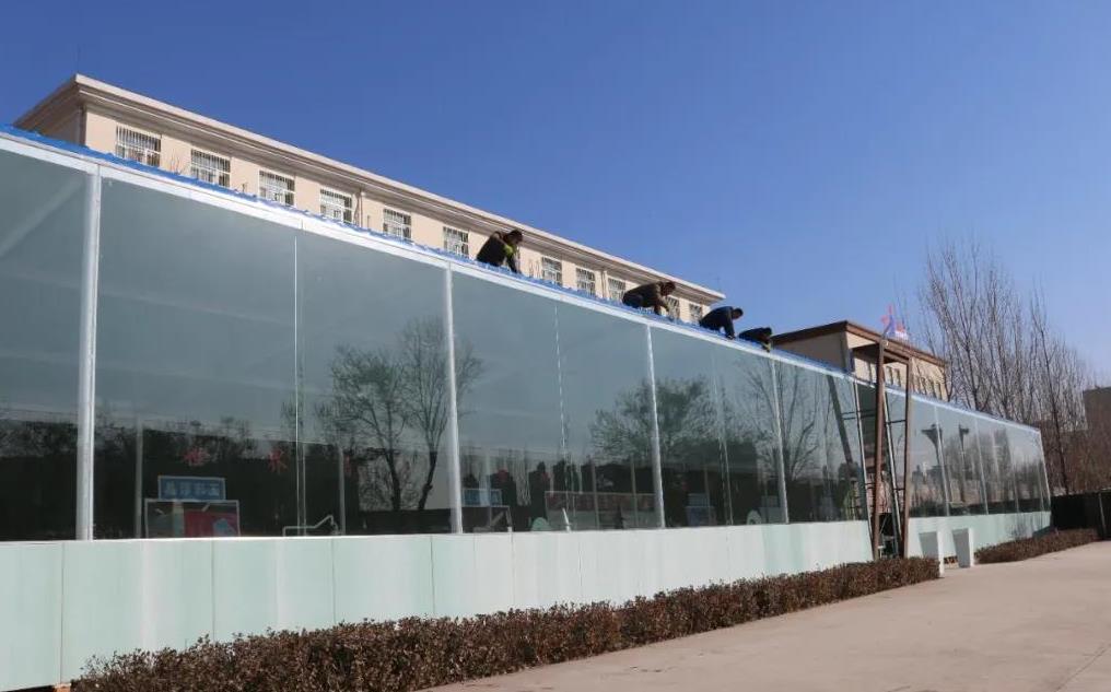 △元月一日的晶牛總部基地,由設計院和浮法安裝隊數十人共同承擔的500㎡晶玉文化展廳的封頂及數百平方米大板玻璃幕墻封裝工程順利到位。實現了雙層高空作業下的安全、高質、按時竣工。