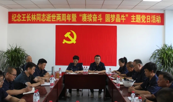 月3日,晶牛集團(tuán)紀(jì)念王長林同志逝世兩周年暨“賡續(xù)奮斗 圓夢晶牛”主題黨日活動在包頭基地舉行。在當(dāng)?shù)毓ぷ鞯募瘓F(tuán)領(lǐng)導(dǎo)、黨員代表及部分職工參加,活動由集團(tuán)黨委委員伊靜主持。