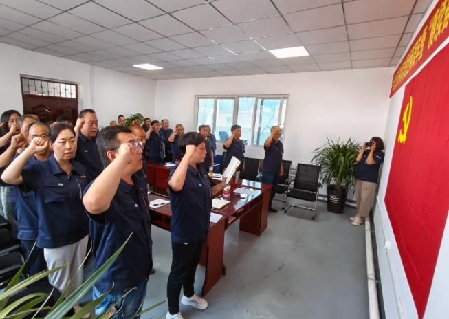活動伊始,首先進(jìn)行了新黨員入黨宣誓和老黨員重溫誓詞環(huán)節(jié)。集團(tuán)黨委書記王群英同志帶領(lǐng)新老黨員面對黨旗莊嚴(yán)宣誓,擲地有聲的誓詞激情澎湃、久久回蕩。隨后,大家集體肅立為王長林主席默哀。宣誓后的激動和沉痛懷念之情交織在一起,提醒著全體同志要不忘入黨初心、牢記三晶使命、賡續(xù)晶牛事業(yè)。